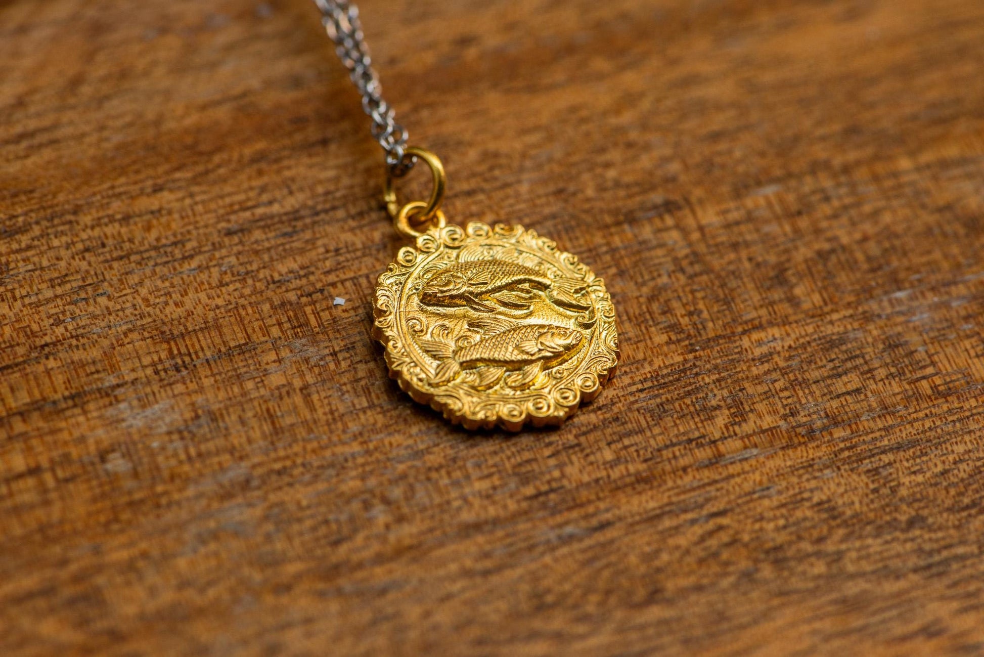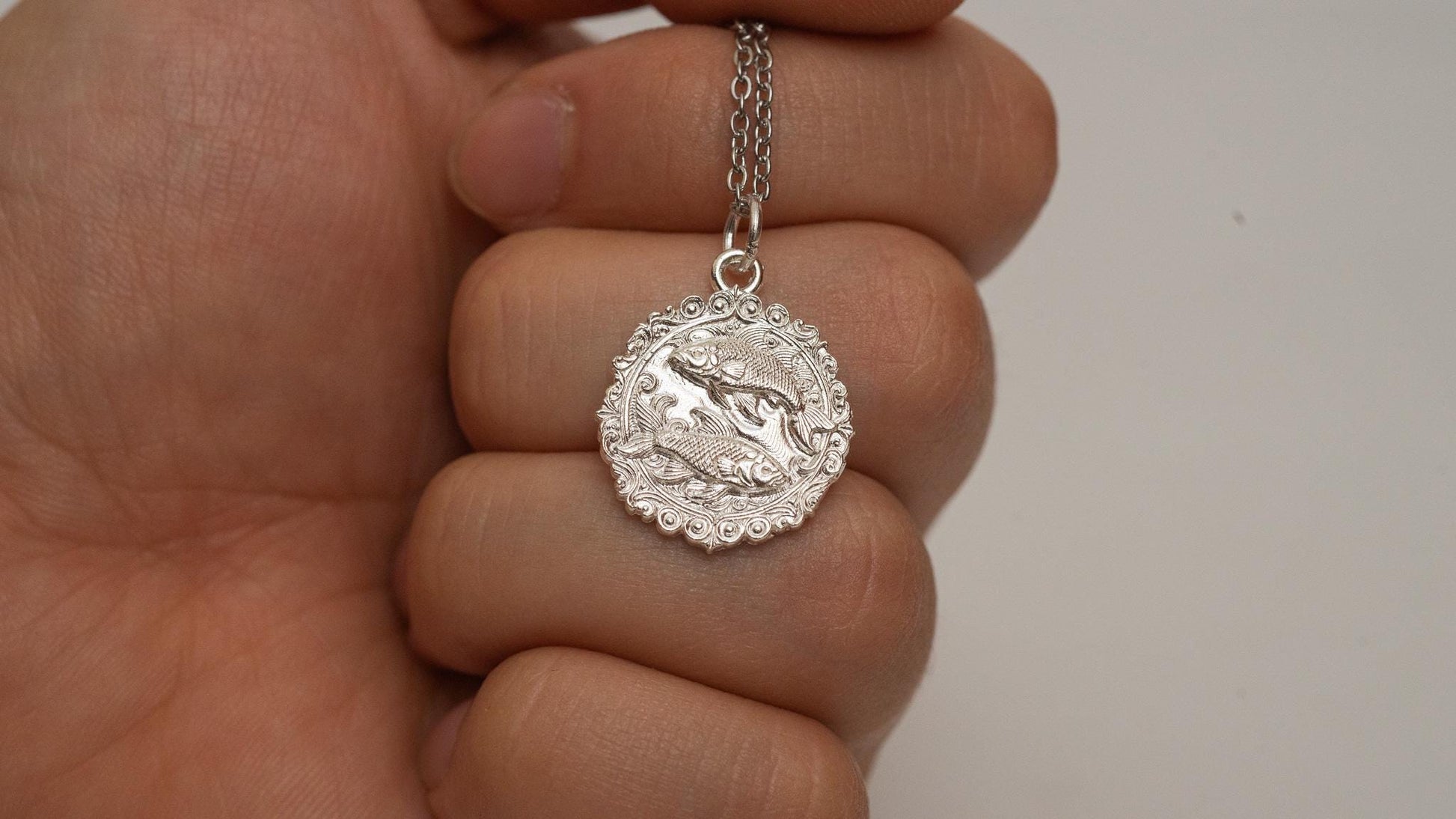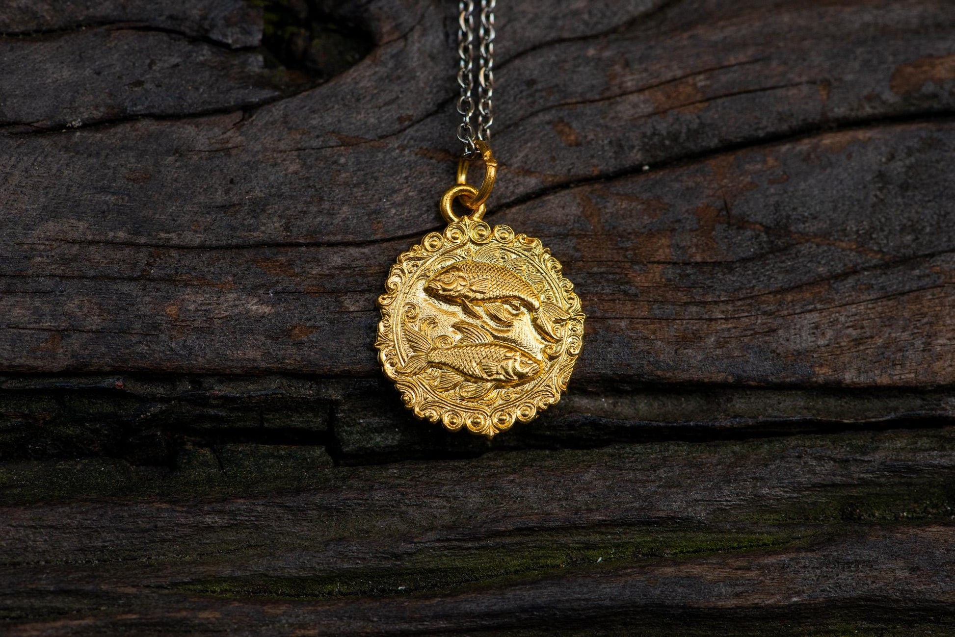 The Pisces symbol — two fish swimming in opposite directions — represents duality, empathy, and spiritual awareness. This pendant speaks to those who feel deeply, love endlessly, and walk through life guided by their heart and intuition.