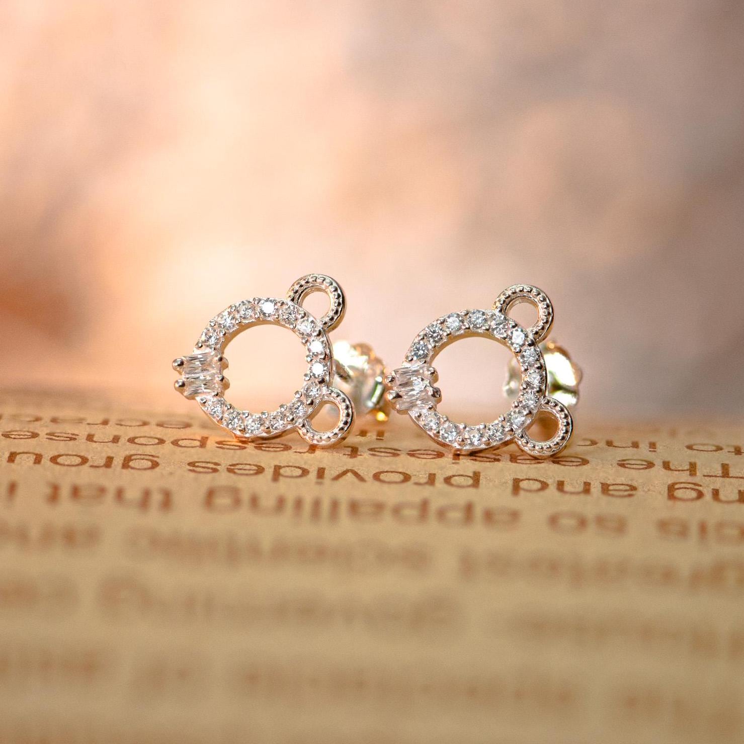 Bear Hoop Stud Earrings: S925 Sterling Silver, Cubic Zirconia