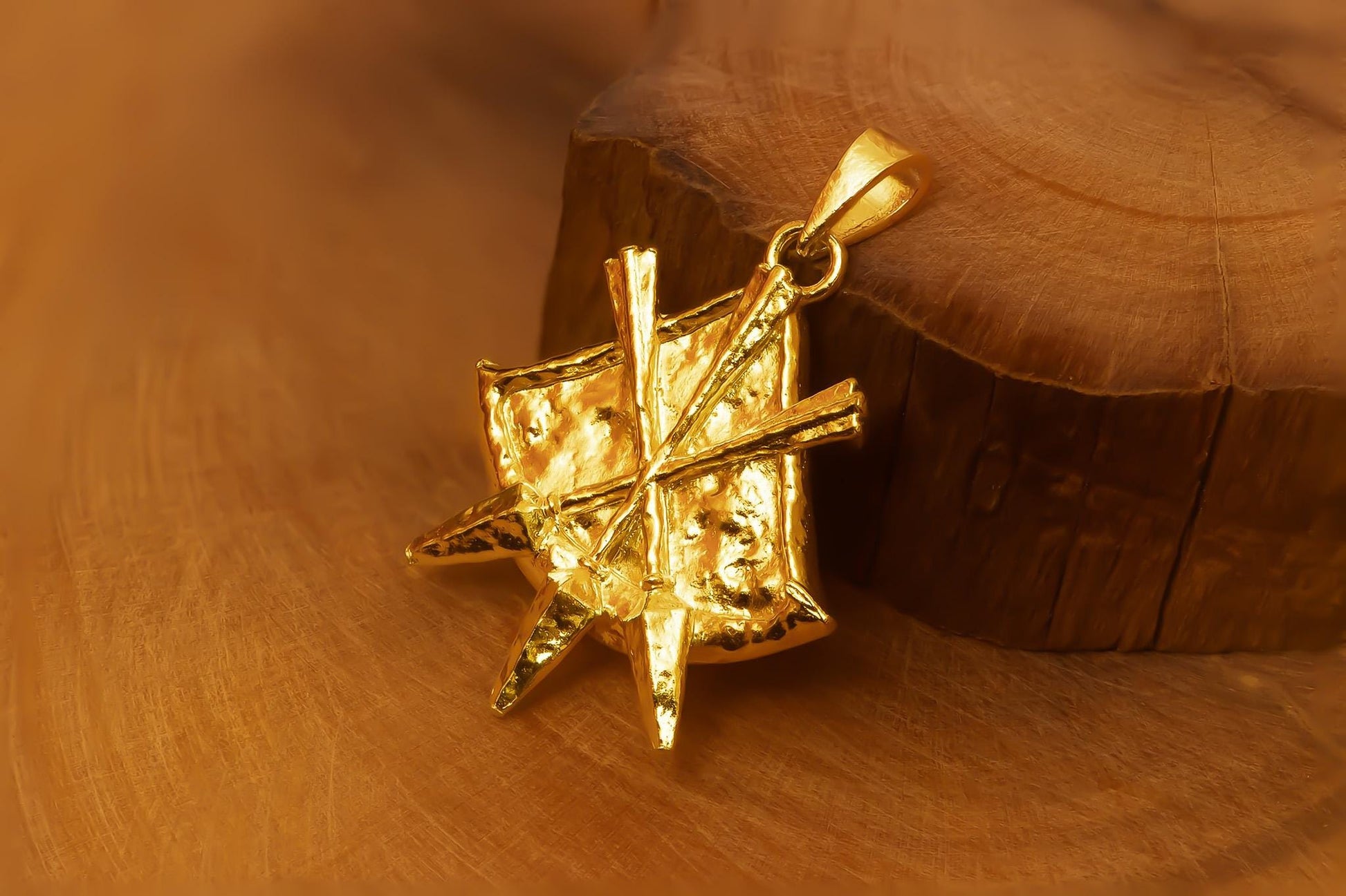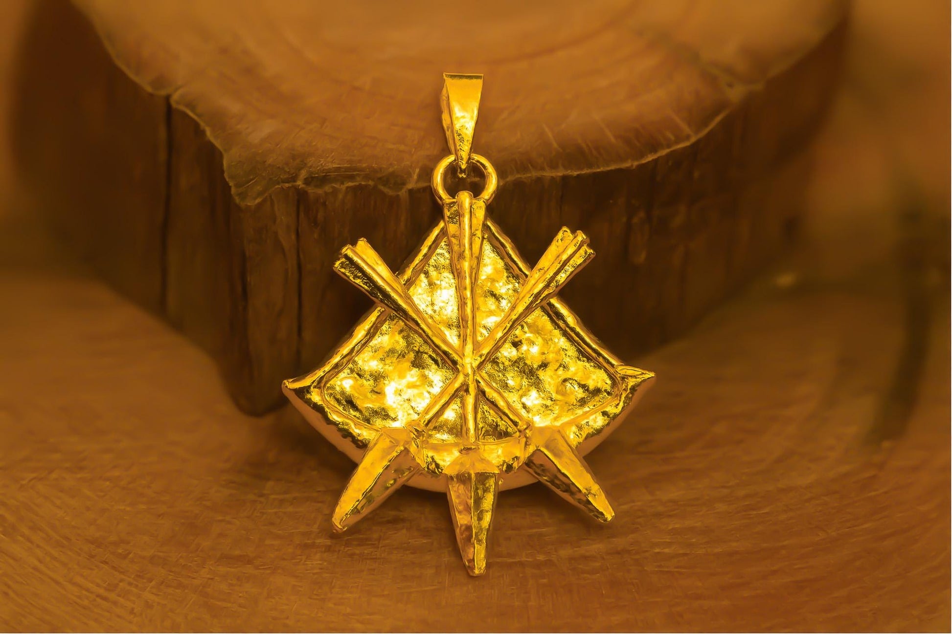 Inspired by the legendary Arrow’s Sting Talisman, this pendant symbolizes precision, courage, and mastery in battle. Its handcrafted texture showcases the artisan’s dedication, making each piece one of a kind.