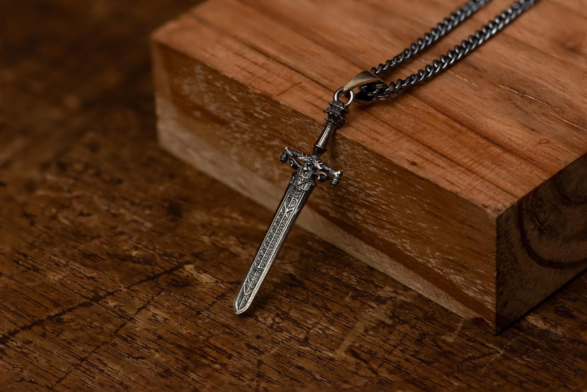 This pendant is inspired by a legendary sword of light and shadow, symbolizing balance between chaos and calm, strength and wisdom. Every detail is carefully handcrafted by skilled artisans to capture the spirit of fantasy and courage.
