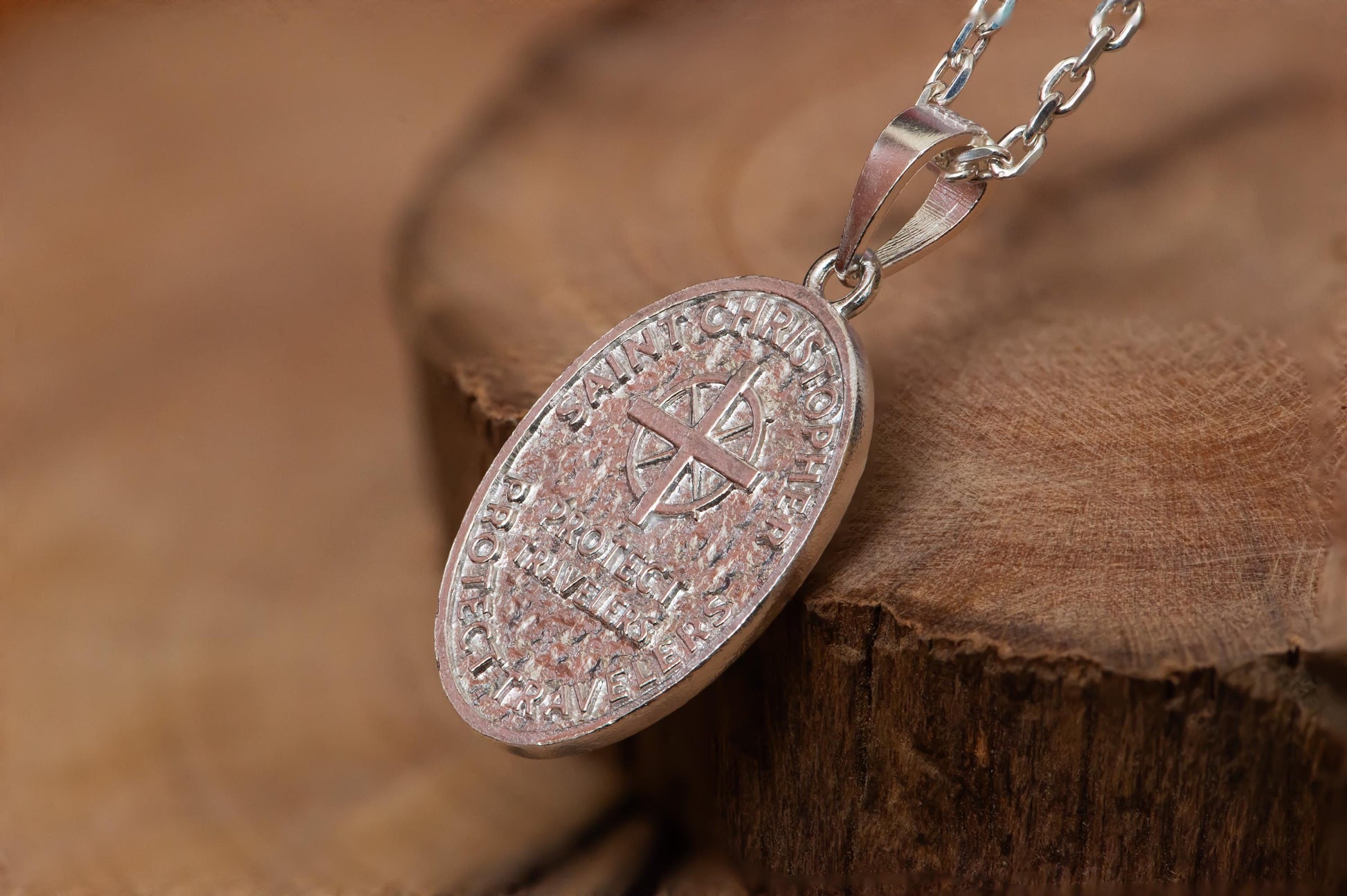This St. Christopher Pendant, crafted from genuine S925 sterling silver, is a timeless symbol of safety and spiritual strength. Known as the patron saint of travelers, St. Christopher brings protection and guidance to those on their journey. Each silver religious necklace is handcrafted with care, creating a meaningful amulet pendant that blends faith and elegance perfectly.