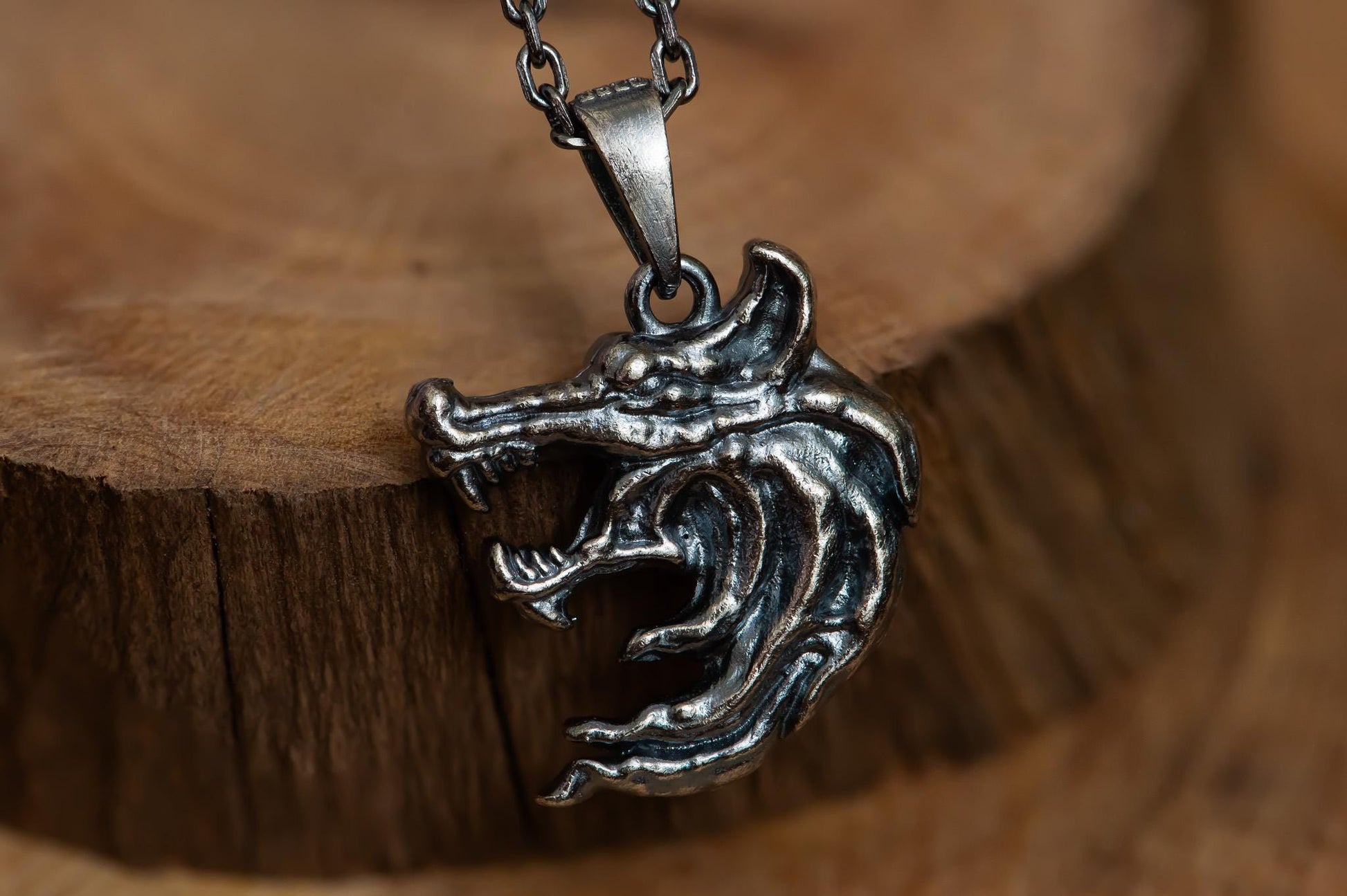 The two-faced wolf pendant represents duality – the calm and the wild within each person. Every piece is handcrafted, emphasizing artistic craftsmanship and durable quality that makes it stand out from mass-produced jewelry.