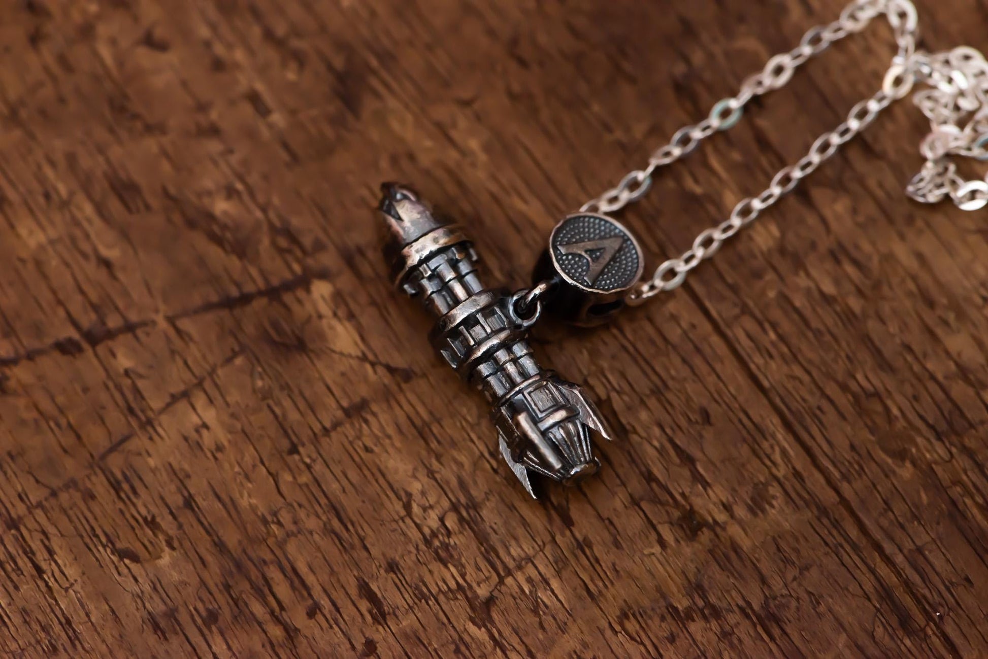 This handcrafted S925 Sterling Silver rocket pendant embodies creativity and boldness, inspired by the explosive energy of adventure. A perfect statement piece for fans of fantasy, cosplay, or unique jewelry design.
