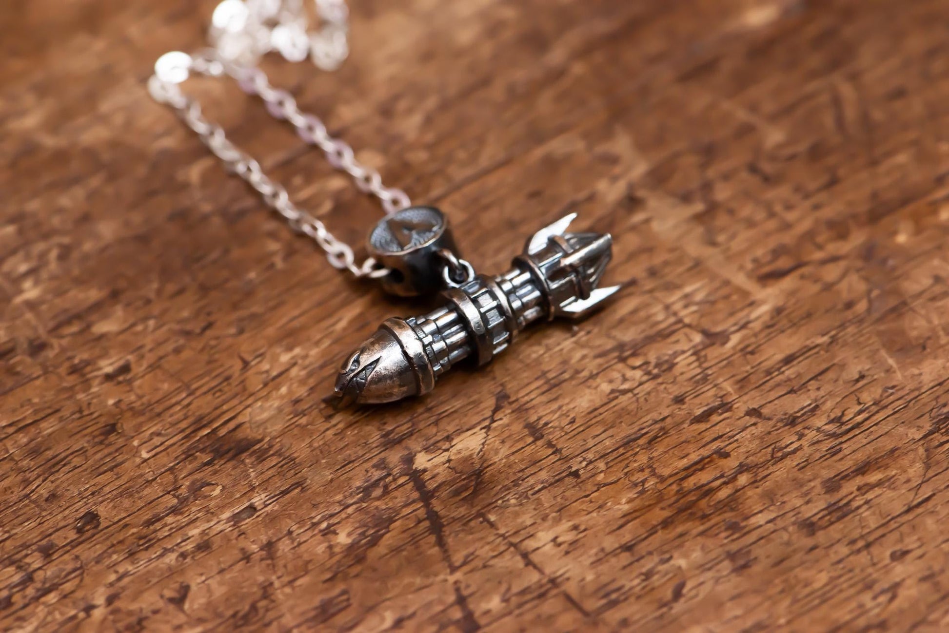 Rocket Pendant Necklace S925 Sterling Silver Oxidized, Vintage Bullet Jewelry for Men and Women, Handmade Gift