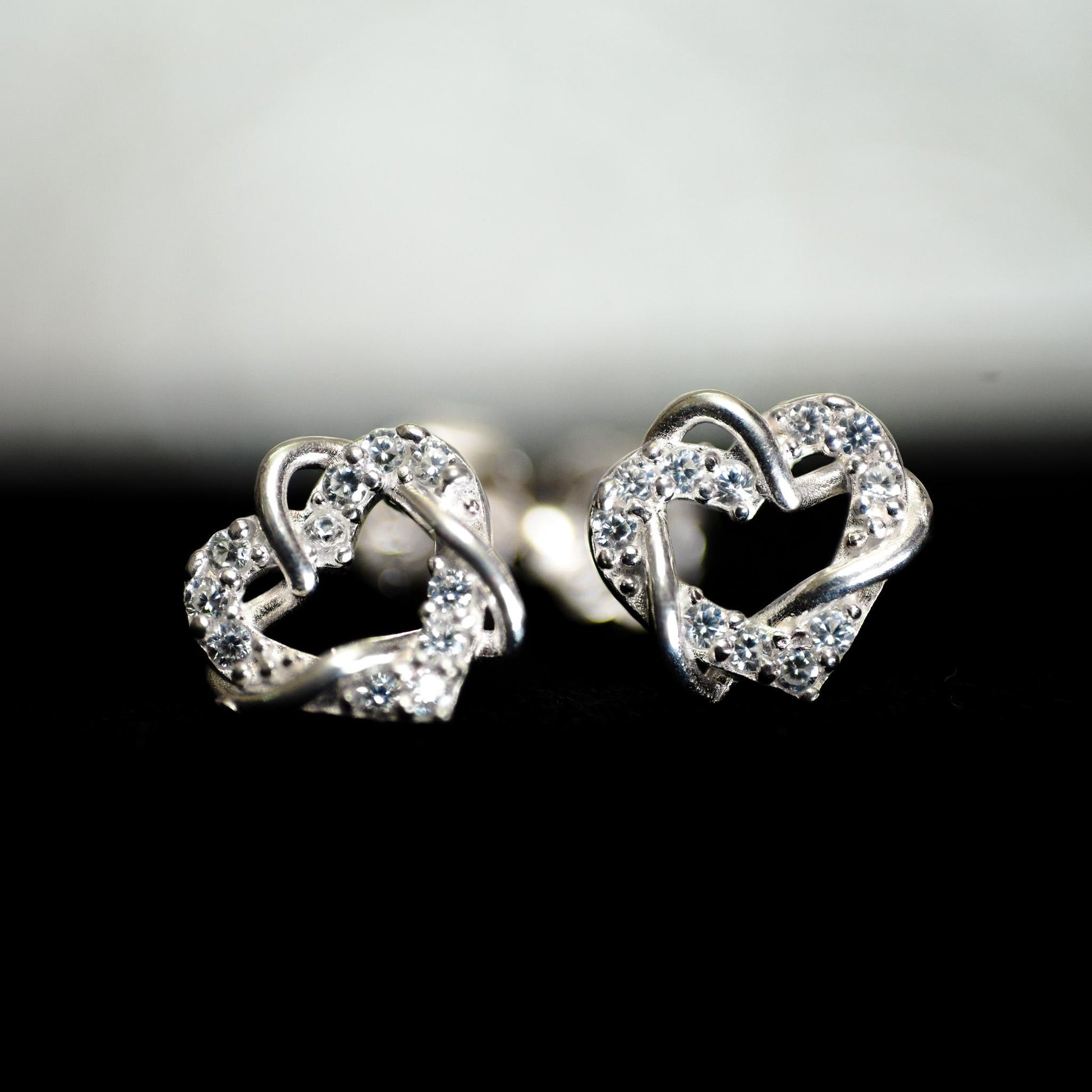 Sterling Silver Heart Stud Earrings: CZ Romantic Jewelry